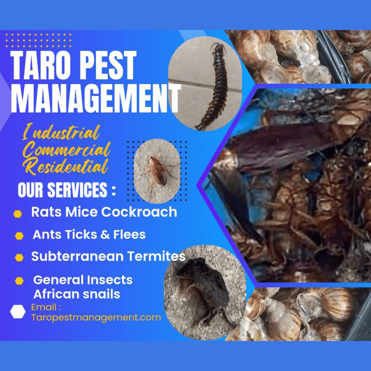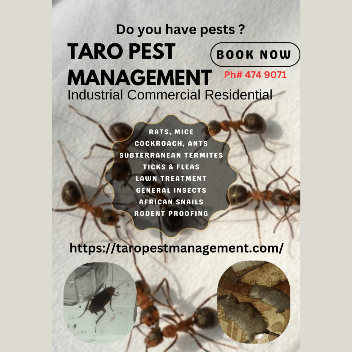 At TARO Pest Management, we are your primary source for effective solutions to all pest control needs. Specializing in safe, reliable, and long-lasting treatments, we help protect your home and business from unwanted pests while ensuring a healthier, pest-free environment. With expert care and proven systems, TARO Pest Management delivers peace of mind you can count on.